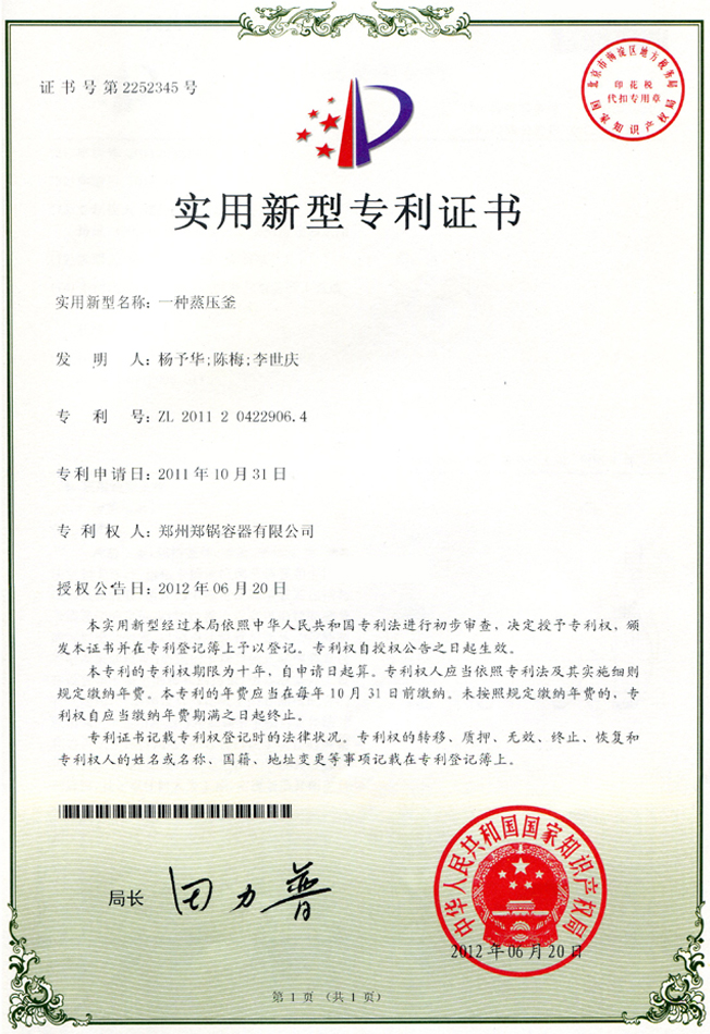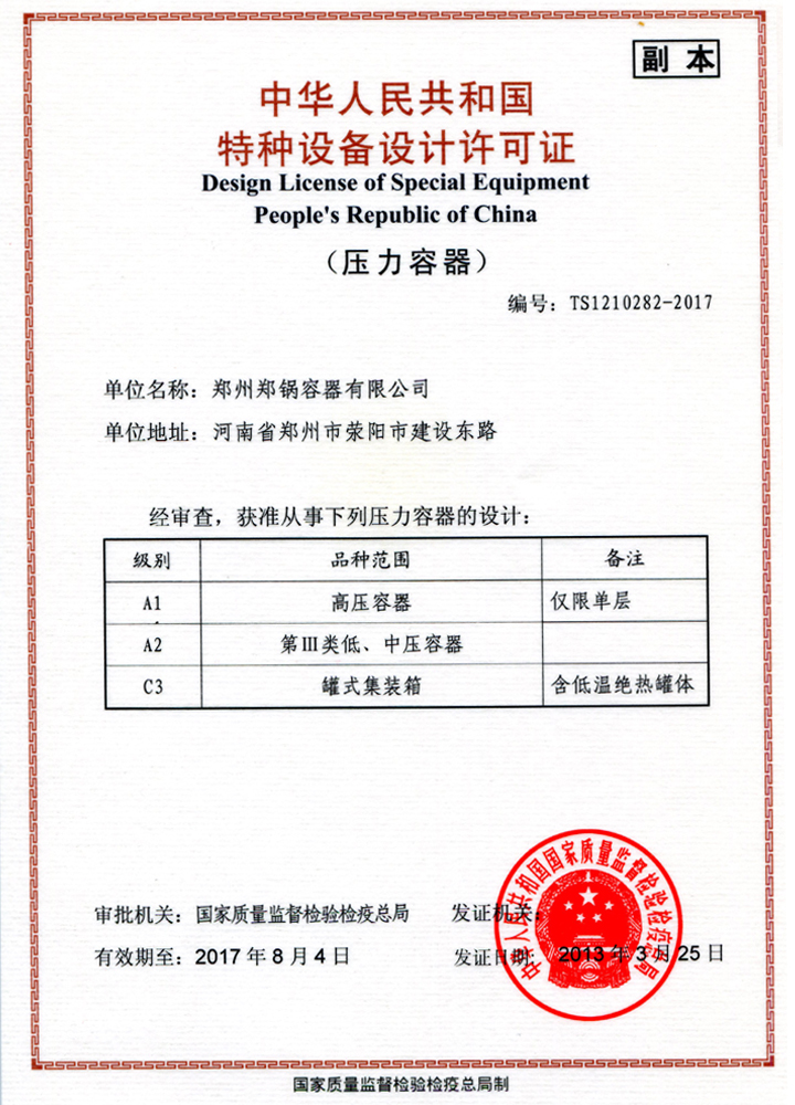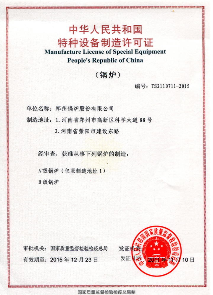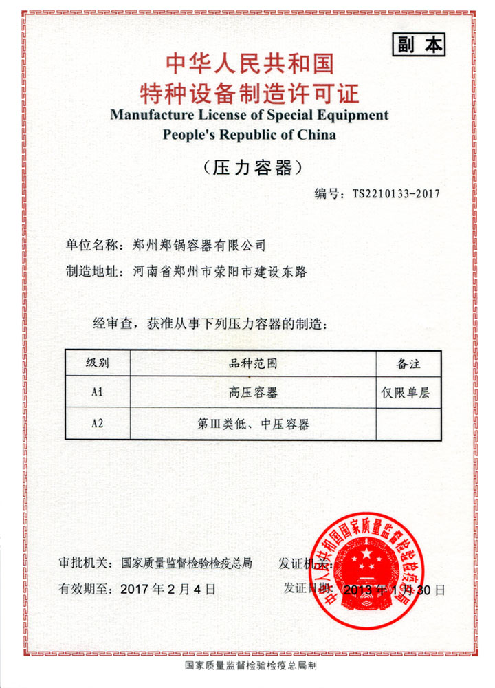 A級鍋爐制造許可證