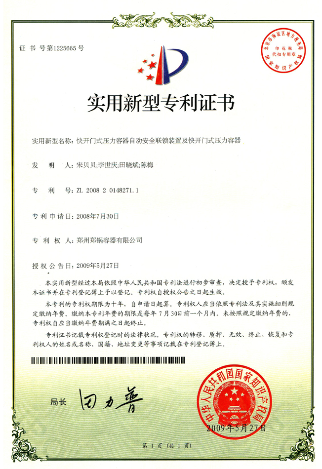 快開門式壓力容器專利