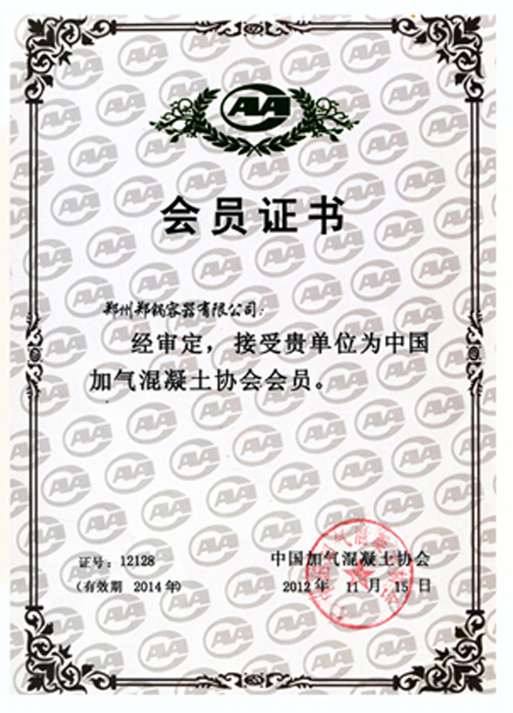 加氣混凝土協會會員證書