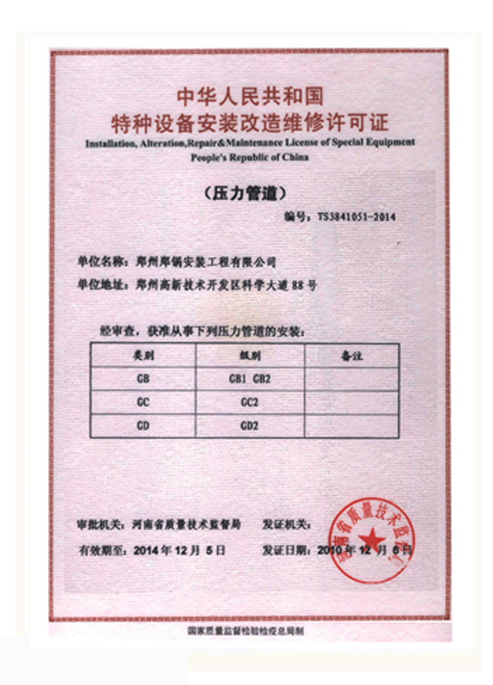 壓力管道許可證