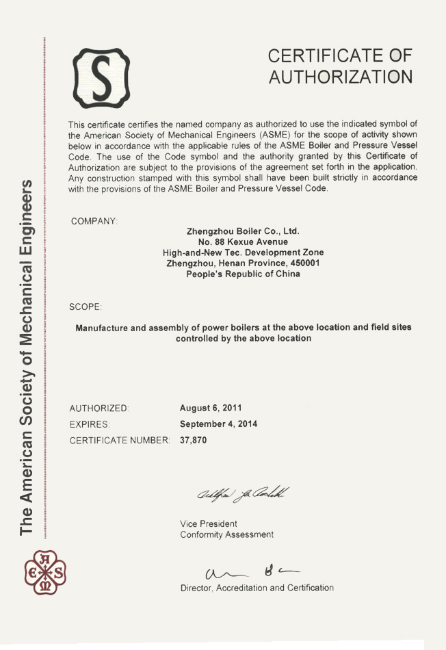 美國機械師工程協會ASME“S”認證