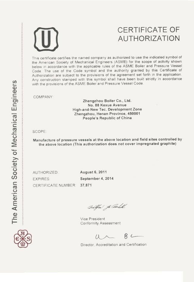 美國機械師工程協會ASME“U”認證